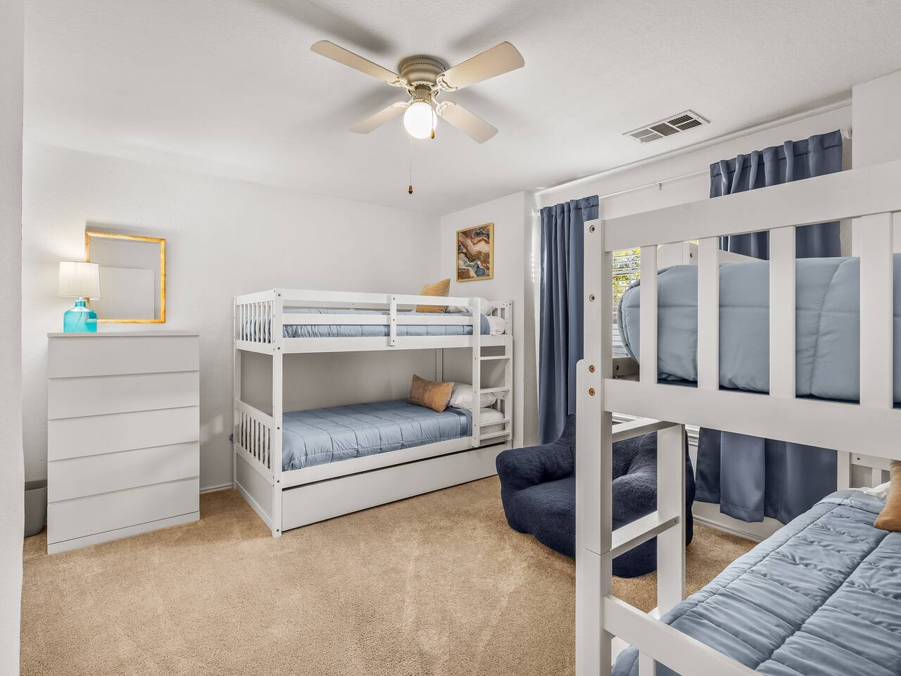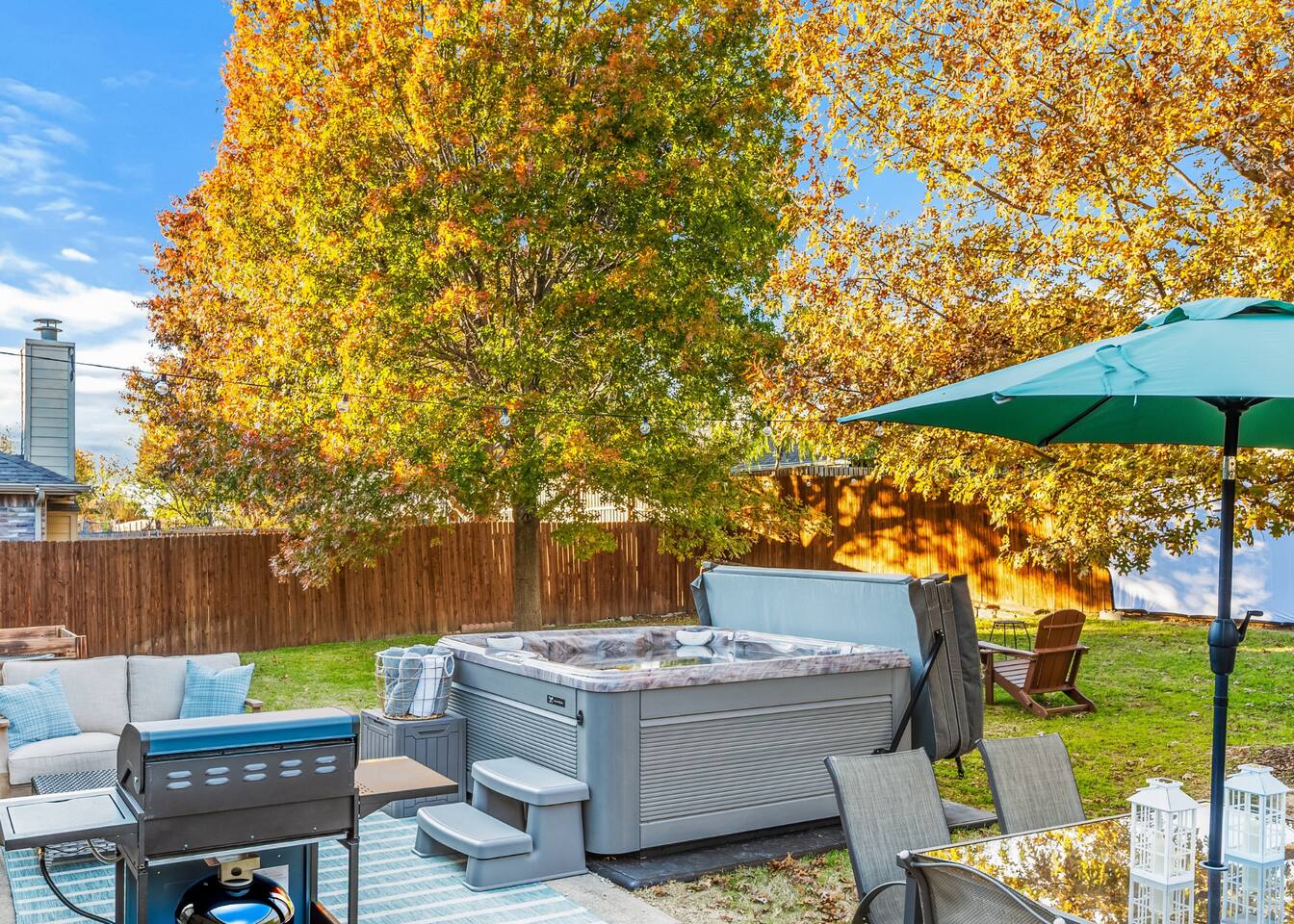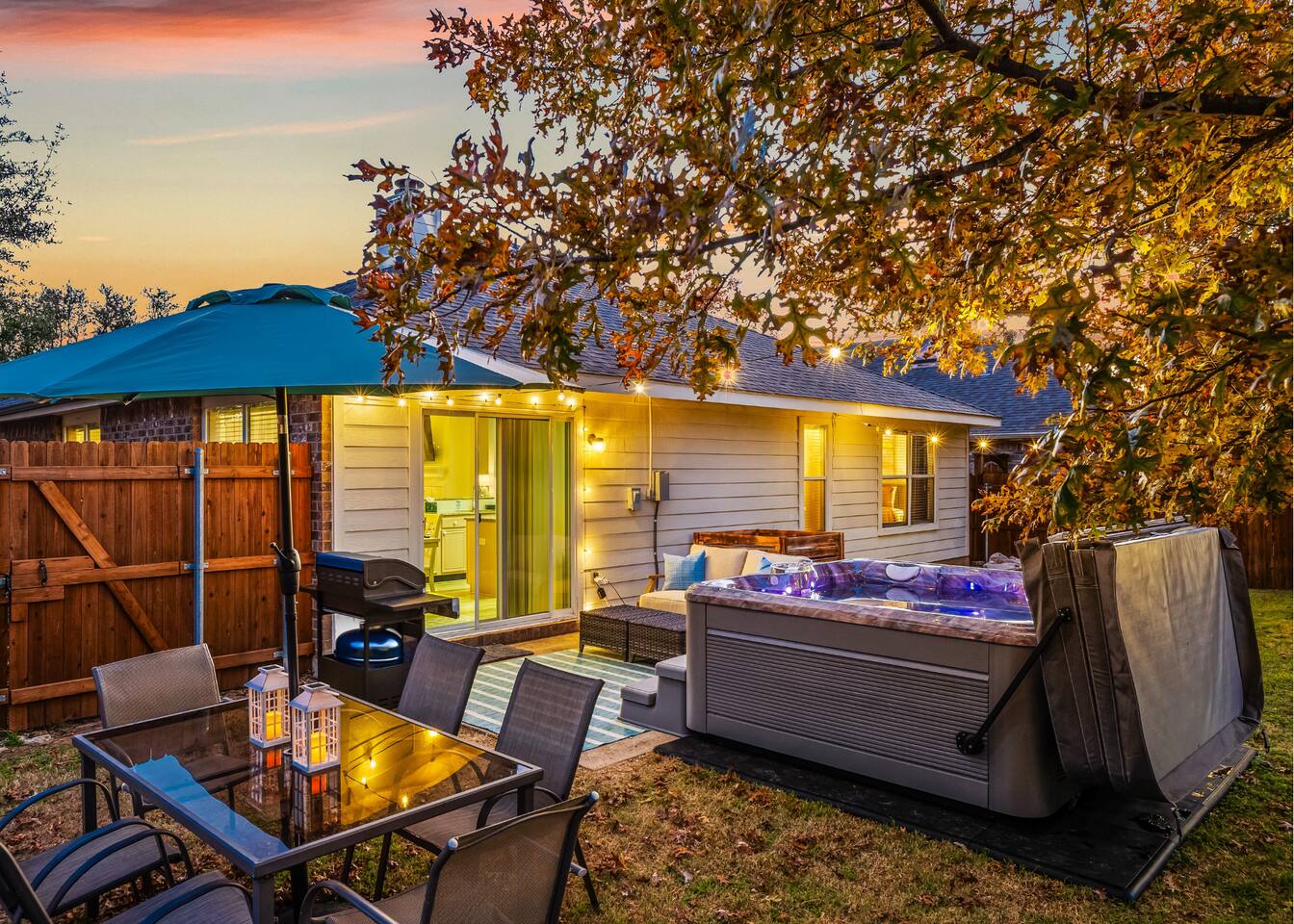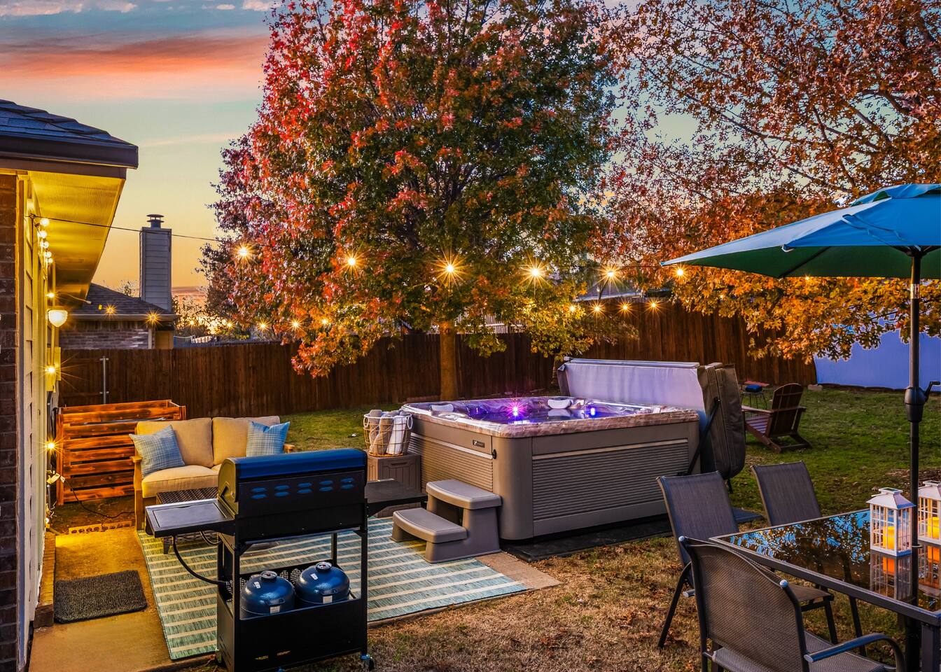 🏠 What You’ll Love: 💠 3 Bedrooms, 2 Baths - Sleeps 10 + Infant 📖 1 Story - 1,471 sqft 🔒 Self Check-In with Smart Lock 💦 Private Hot Tub - Seats 6 w/Lounger 🔥 Fire Pit w/Cooking Feature 🎥 Outdoor Projector for Movies/Sports 🥩 BBQ Gas Grill + Free Propane 🍽️ Outdoor Dining 🐶 1 Well Behaved Pup Allowed (Fully Fenced) ☕ Complimentary Coffee + Tea Stations 🍳 Fully Equipped Kitchen w/Air Fryer 🧸 Child Friendly: Crib/High Chair 🛌🏽 100% Egyptian Cotton Sheets 🎲 Games for Family Game Night 🔊 JBL Karaoke Boombox w/Mic 🧺 In-Unit Washer and Dryer 🚀 High Speed Wi-Fi Throughout 💻 Dedicated Workspace 📺 3 Large Smart TVs (+ Smart Projector) 🚘 Garage, Driveway & Street Parking 💎 Come experience this thoughtfully designed, family-friendly retreat in McKinney, Texas, where calming blues and denim-inspired details create a relaxed vibe throughout the home - as comfortable and welcoming as your favorite pair of broken-in blue jeans 😉 🌅 Outdoor Oasis - Hands down one of the best backyards in the area, designed for creating memories! ✨⭐ Soak against the Hot Tub jets and take in an incredible Texas evening under the stars after a long day at local attractions. 🎬🔥 Cozy up under blankets and host a backyard movie night enjoying s'mores around the Fire Pit - or put on the game! The smart projector allows you to log in to any app, just as a smart TV would! 🍔🥩 Throw burgers or steaks on the grill and enjoy dinner together around the outdoor dining table under the glow of the string lights. 📺 Living Spaces - The cozy living room features seating for the entire group with a 65” Samsung Smart TV. 🔥 Light a fire in the wood burning fire place for the warm, crackling winter ambiance. 🎲 The lift-top coffee table has lots of games inside, perfect for gathering everyone together for a game night! 🛌🏽 The Couch is a brand new Queen Sleeper Sofa, providing another sleeping option for 2 adults (or kids of course). 🍳 Cooking Spaces - Cook up a family meal in the spacious, fully stocked kitchen with granite counters, and ample counter space. 6qt Air Fryer included! 🥩 Throw some burgers, hot dogs or steaks on the 4 burner gas grill that includes a side burner for side dishes. Propane is complimentary! 🔥 The Fire Pit is also a cooking option with the 18inch rotating grill feature that can be raised or lowered. ☕ Beverages - A dedicated coffee station is ready for your morning (or afternoon) brew. We provide a Keurig® K-Duo® Single Serve & Carafe Coffee Maker - which allows you to brew single K-Cup® pods OR in a full 12 cup carafe so you can serve yourself or a crowd! A generous amount of coffee is provided complimentary, as well as coffee essentials :) 🍵 Choose from a variety of tea options - provided complimentary alongside an electric tea kettle. 💧 Endless filtered water from the brand new Whirlpool Fridge is available! 🍽️ Indoor/Outdoor Dining: Enjoy your meals together indoors around the spacious dining room table (currently set to seat 6, but can easily expand to accommodate 8 with the extensions.) 📺 Dine in the living room in front of the 65" TV: The sofa table/bar offers 2 bar stools, or raise the lift-top coffee table and enjoy your meal on the couch. 🏈 Create an al fresco dining experience, while you watch an evening game on the Outdoor Projector seated around the 4 Adirondack Chairs. 🍴 Gather around the 6 person outdoor dining table under the umbrella or in the evening under the illuminating string lights. 🛏️ Rooms to Relax & Recharge: 1️⃣ Master Bedroom: - King Nectar Mattress - 55" Smart Samsung TV - Private Master Bath with Shower and Garden Tub - Beautiful Backyard Views from the Bedroom Window - Bedside Lamps with USB for Charging Phones - Dresser with 6 Drawers - Dedicated Workspace - Large Master Closet has been transformed into a "Nursery" with a Crib and White Noise Machine (still providing more than enough closet space if the Crib isn't needed.) 2️⃣ 2nd Bedroom: - Queen Nectar Mattress - 55" Smart Vizio TV - Full Bath access through Hallway shared with 3rd Bedroom - Single Sink and Tub/Shower Combo - Dresser with tons of Storage - Lamp with USB Charger - Headboard with Lights and Outlet options 3️⃣ 3rd Bedroom: - 2 Twin Bunk Beds with Trundles (Sleeps 6) - Closet and Dresser for Storage - Full Bath access through Hallway shared with 2nd Bedroom - Single Sink and Tub/Shower Combo 💠 Queen Sleeper Sofa: - Brand New Gel Cloud Foam Mattress with Pillowtop - Provides a Sleeping Option for 2 Adults (or kids of course) ➕ Complimentary Essentials We Provide: ☕ Generous Initial Coffee Supply 🥛 Coffee Accompaniments 🍵 Variety of Tea Options 🛏️ Fresh Linens, Towels + Hot Tub Towels 🚿 Shampoo, Conditioner & Body Wash 🧺 Laundry Pods, Scent Boosters, Dryer Sheets, Dryer Balls 🍽 Dishwasher Detergent 🧴 Liquid Hand & Dish Soap 🗑️ Trash Bags 🧻 Toilet Paper & Paper Towels 🚑 First Aid Kit 🧼 Clean & Secure The home is professionally cleaned and sanitized before every stay for your peace of mind. All sheets, towels, twin comforters, and Duvet covers for King and Queen beds are washed for you before your arrival. 🎯 PRIME LOCATION: ❗ Top Attractions: The Star Frisco - 12 mi Universal Studios Frisco - 6.8 mi PGA Frisco Golf Course - 7 mi Toyota Stadium Frisco - 9.1 mi Comerica Center Frisco - 11.4 mi Allen Event Center - 9.5 mi Allen Premium Outlets - 9.3 mi AT&T Stadium - 46.2 mi 🛫 Airports: DFW Airport - 30.6 mi Dallas Love Field Airport - 31.4 mi McKinney National Airport - 10.3 🏥 Hospitals: Baylor Scott and White McKinney - 4.3 mi Medical City McKinney - 9.4 mi Medical City Frisco - 9.6 mi Baylor Scott and White Frisco - 12.4 mi 🏡 Neighborhood Perks: Endless dining/shopping options within minutes of the home! Sprouts, Dunkin Donuts, and 7 Eleven are .5 mile away & just a 10 minute walk! Walmart - 1.1 mi HEB (Famous TX